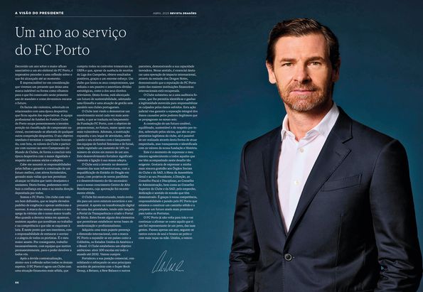 André Villas-Boas aproveitou o editorial da revista Dragões do mês de maio para fazer um balanço sobre o primeiro ano de mandato como presidente do FC Porto, ele que tomou posse faz amanhã precisamente um ano. O líder azul e branco reconhece que o plano desportivo ficou bastante aquém do esperado, mas promete trabalhar afincadamente para recolocar os dragões na rota do sucesso. «Os factos são violentos, sobretudo os relacionados com uma época desportiva que ficou aquém das expectativas. A equipa profissional de futebol do Futebol Clube do Porto ocupa presentemente a terceira posição na classificação do campeonato nacional, encontrando-se afastada de qualquer outra competição desportiva. O seu objetivo imediato terminar o campeonato honrando, com brio, os valores do Clube e participar com sucesso no novo Campeonato do Mundo de Clubes, de forma a concluir esta época desportiva com a maior dignidade e respeito aos nossos sócios e adeptos. Cabe-me assumir as responsabilidades pelas falhas e garantir a construção de um futuro melhor, com ativos fortalecidos, gerando mais-valias que nos permitam alcançar os títulos que tanto desejamos e ansiamos. Desta forma, poderemos retribuir a confiança em mim e na minha direção depositada por todos. Somos o FC Porto. Um clube com valores bem definidos, que se impõe elevados padrões de exigência e apenas ambiciona o sucesso. A marca das nossas gentes e a e o apego vitórias são o nosso maior trunfo. Mas quando a derrota teima em aparecer, resistem aqueles que acreditam no trabalho e na competência e que não se esquivam à luta. É neste ponto que nos inserimos, com a responsabilidade de restaurar o sorriso e a alegria de todos os portistas. É o meu maior anseio. Por conseguinte, trabalho incansavelmente, com equipas que motivo permanentemente, para o poder devolver a todos vós», escreveu.