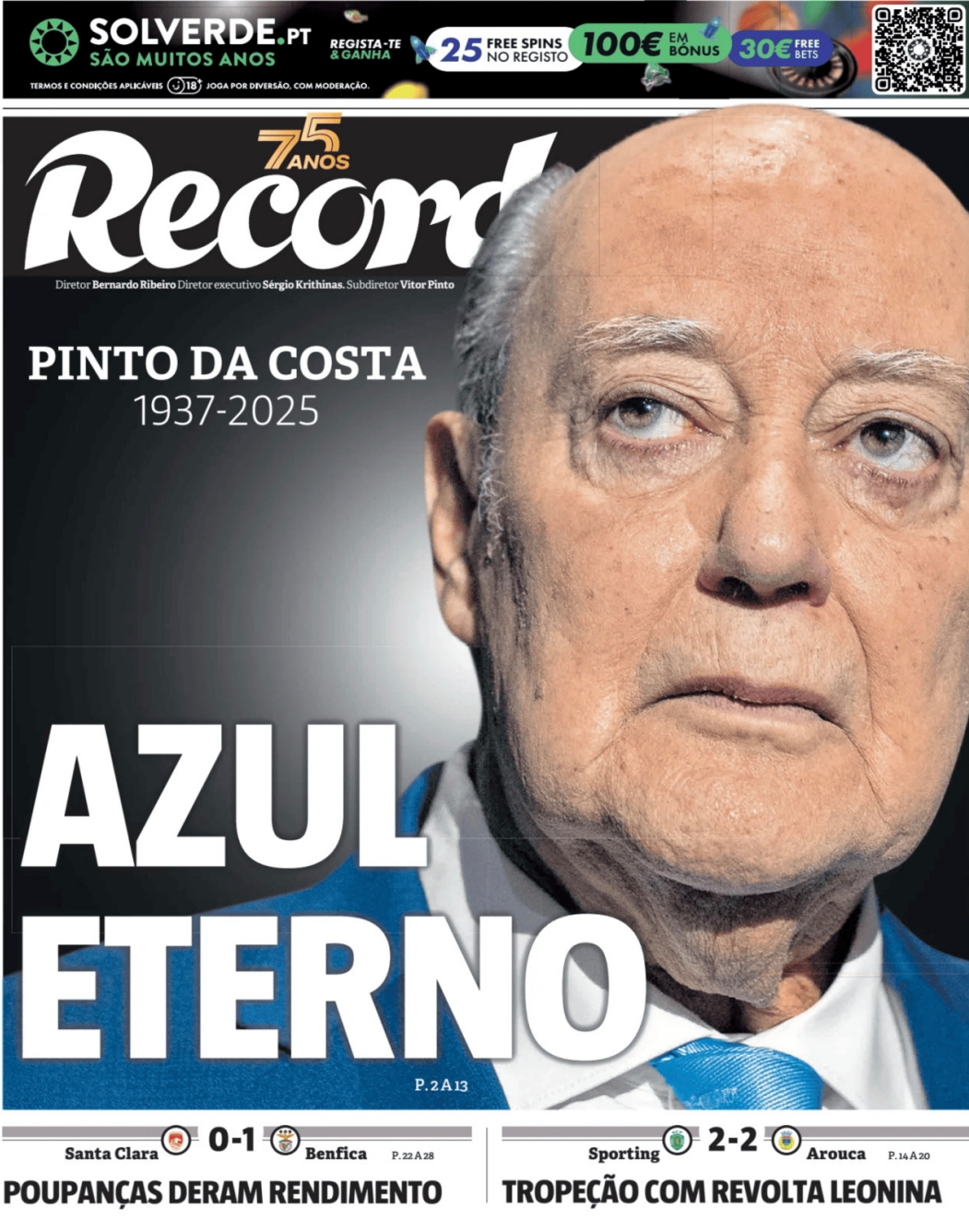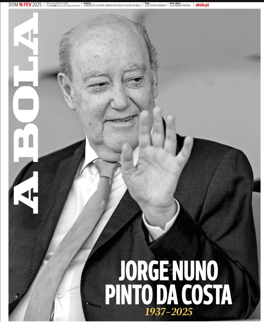 Jorge Nuno Pinto da Costa faleceu no sábado aos 87 anos e abalou o desporto português. Este domingo, os principais jornais desportivos, A Bola, O Jogo e o Record, fizeram a devida homenagem ao antigo presidente do FC Porto.