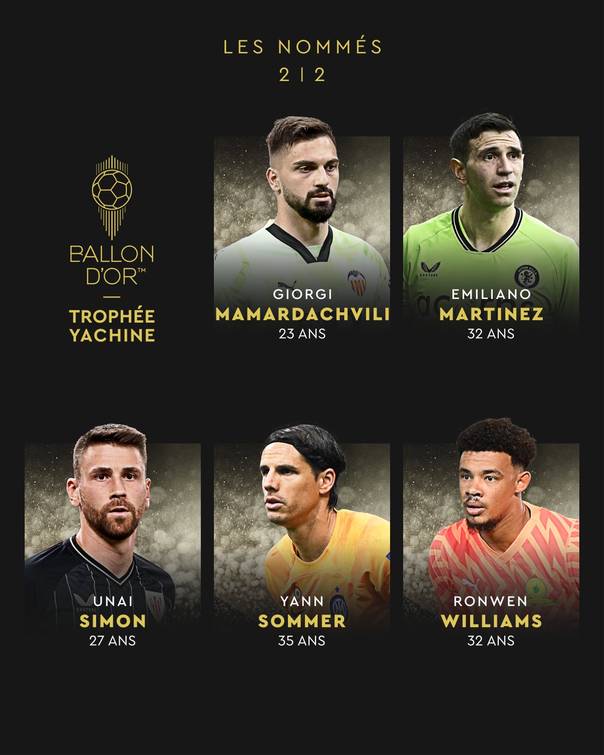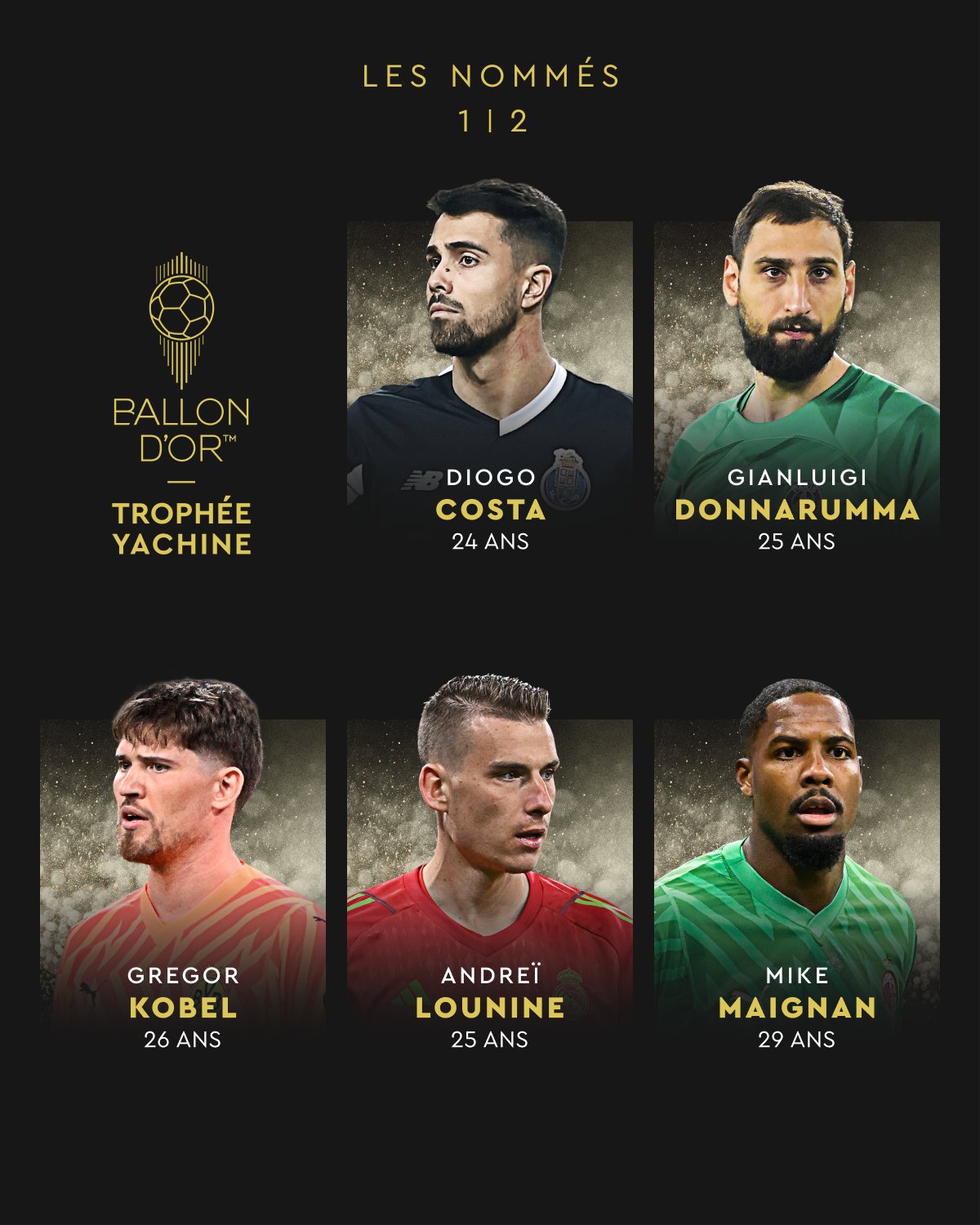 Além de Diogo Costa também Gianluigi Donnarumma (Itália/PSG), Gregor Köbel (Suíça/Dortmund), Andriy Lunin (Ucrânia/Real Madrid), Mike Maignan (França/AC Milan), Giorgi Mamardashvili (Geórgia/Valência), Emiliano Martínez (Argentina/Aston Villa), Unai Simón (Espanha/Athletic), Yann Sommer (Suíça/Inter de Milão) e Ronwen Williams (África do Sul/Mamelodi Sundowns) estão na corrida pelo galardão.
