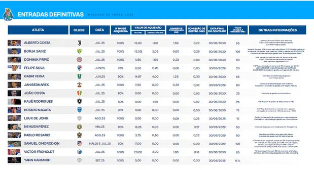 O FC Porto voltou a disponibilizar no seu Portal da Transparência os detalhes completos sobre as transferências de verão, repetindo o procedimento do ano passado.
