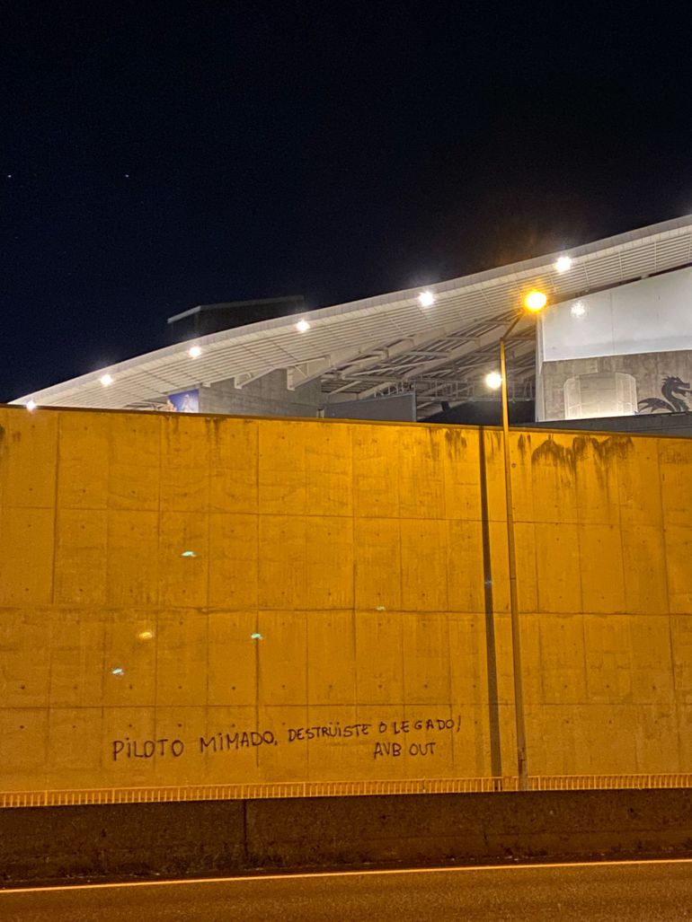 «Um ano de presidência, FC Porto em decadência», «A mentira do zelador ajudou ao vencedor», «AVB Out [André Villas-Boas fora]», «Lobo para dentro, cordeiro para fora», «Direção a fugir, rivais a rir», «AVB ditador, clube sofredor» e «Piloto mimado destruíste o legado» foram as frases pintadas junto ao recinto azul e branco.