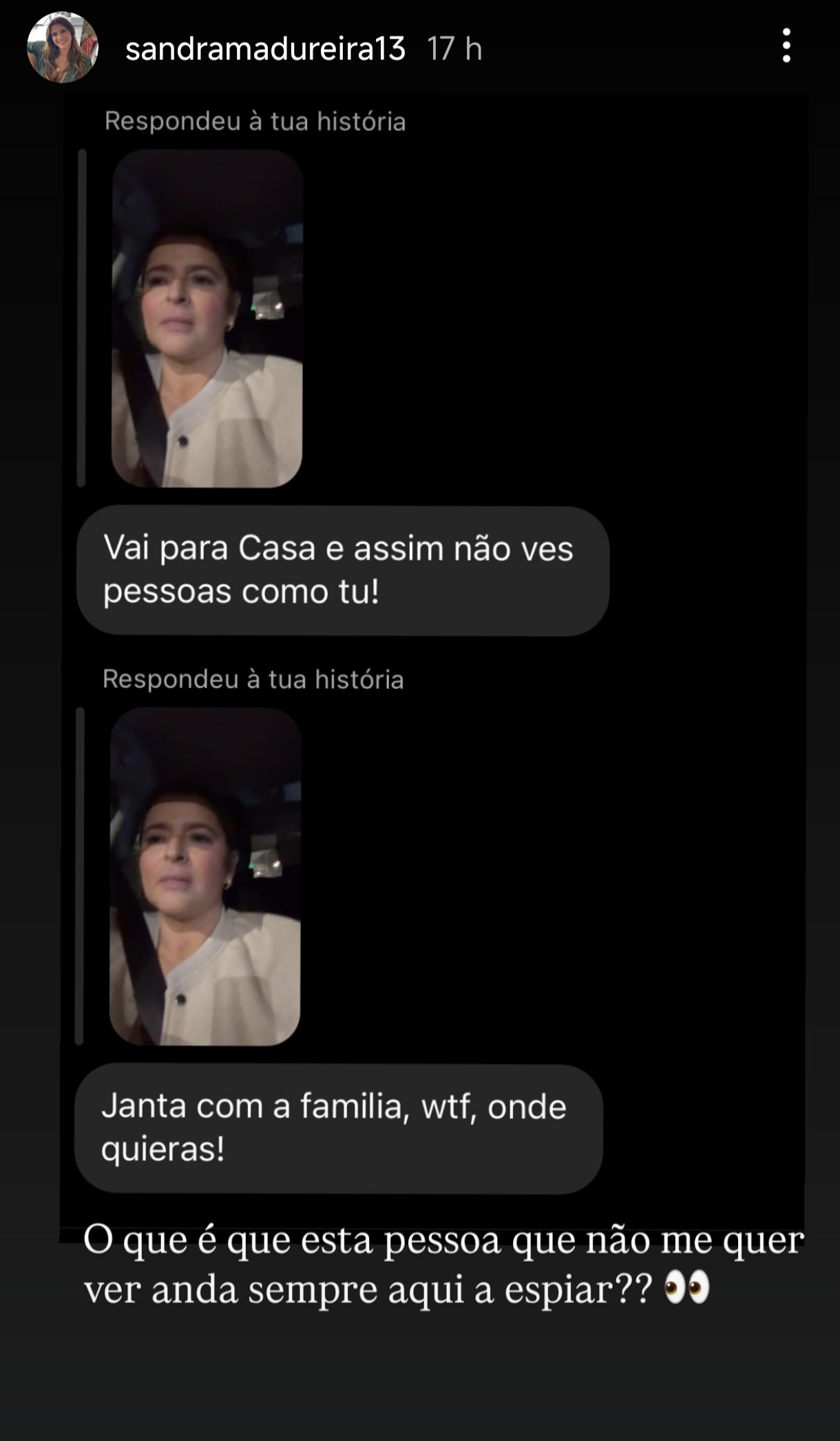 Ao final da noite, a mulher de Fernando Madureira, antigo líder da claque Super Dragões, voltou a partilhar mais mensagens, sem identificar os autores.